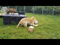 Tigger came to us in January from a closing facility in Oklahoma. The owner of the facility said Tigger came from yet another facility in the area. He had apparently been used for cub-petting and was set to be euthanized because he aged out of the program and could no longer earn money. Instead, the owner of the facility that eventually closed offered to take him and five other tigers in. All of the tigers from this rescue were obese and suffering from genetic health issues when they arrived at the Refuge. One tiger, Diesel, was suffering from pre-existing feline infectious anemia for several days before we arrived and later succumbed to the illness. Thankfully, the other tigers, including Tigger, never showed symptoms of the disease. Tigger has since gotten to a healthy weight and is known for his curiosity and playfulness. He isn't always the best at sharing toys with his habitat mate, Floyd, but the pair have a strong bond.